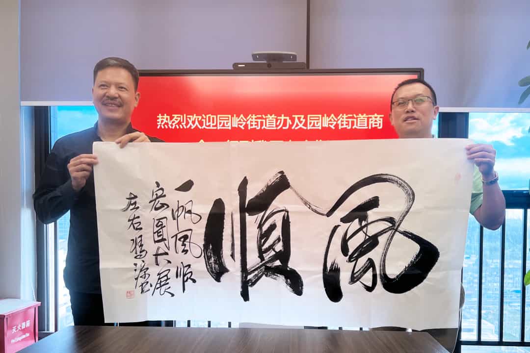 最后,园岭街道办及园岭商会一行向滨洁环保赠送了贺词。