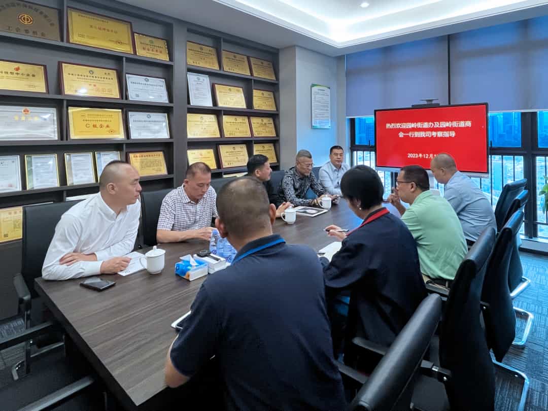 2023年12月15日下午,深圳市福田区园岭街道办及园岭商会相关领导一行到滨洁环保参观指导,开展园岭街道“百千万工程”活动,公司总经理陈奎、副总经理陈宏、总经理助理夏晶晶及工会主席梁汉星等陪同。